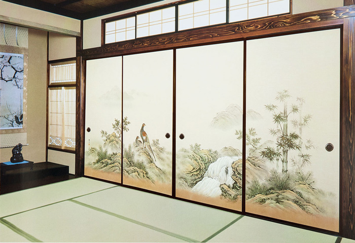 襖(ふすま)の張り替えは新鳥の子等の西洋紙のようなお手軽タイプや織物のような糸入紙、また漉いた和紙を使った本格的な物まで幅広く種類がございます